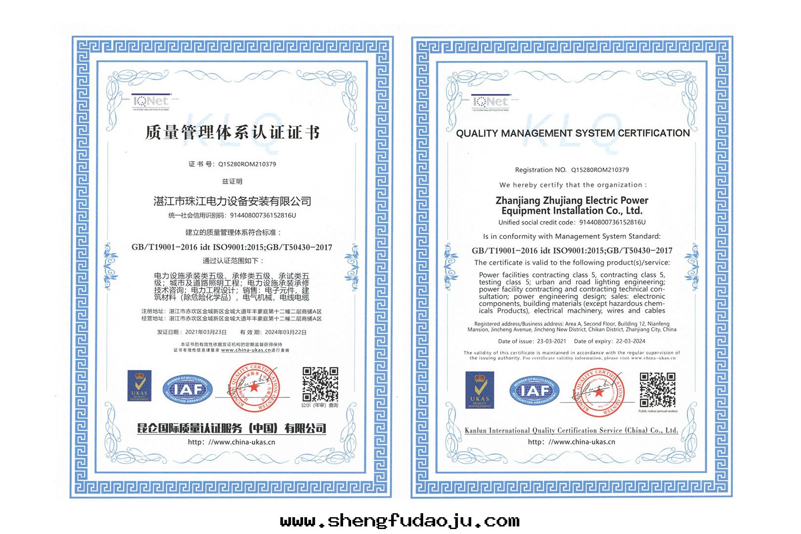公(gōng)司狠抓質(zhì)量(liàng)關(guān),求信(xìn)譽,謀發(fà)展(zhǎn),提(tí)高(gāo)企業知名(míng)度(dù),通(tòng)过(guò)了(le)《环(huán)境管(guǎn)理(lǐ)體(tǐ)系(xì)》、《职業健康安(ān)全(quán)管(guǎn)理(lǐ)體(tǐ)系(xì)》和(hé)《質(zhì)量(liàng)管(guǎn)理(lǐ)體(tǐ)系(xì)》國(guó)際質(zhì)量(liàng)體(tǐ)系(xì)認证,历年来(lái)持(chí)續有(yǒu)效。